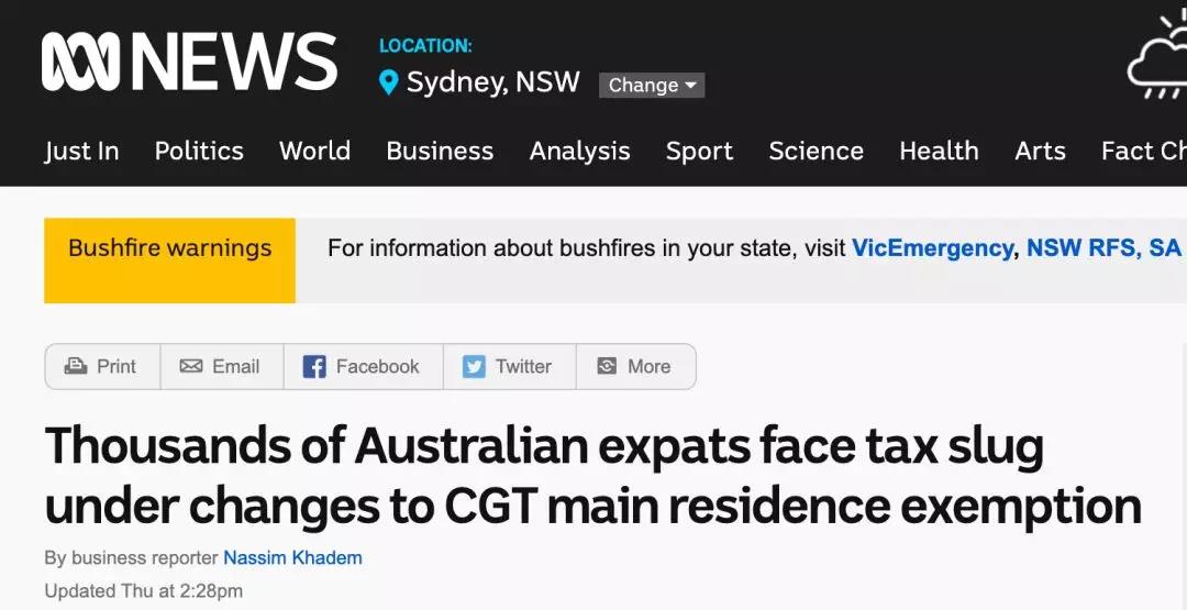 據(jù)ABC報道,上個月,澳洲聯(lián)邦參議院最終通過了針對海外居留人士的資本利得稅改革方案。該法取消了自1985年9月20日以來,對澳洲僑民的集體稅率豁免。