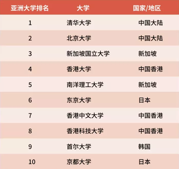 清華北大位列亞洲大學前二