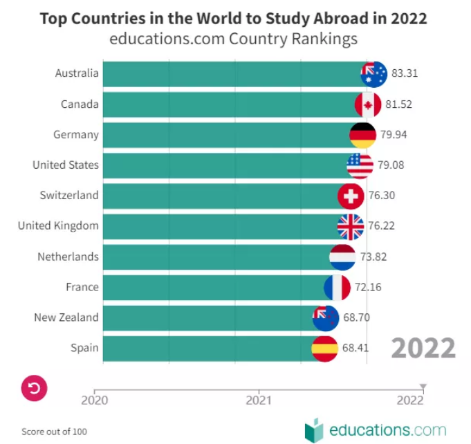2022世界最佳留學(xué)國排名公布,英美沒進(jìn)前三,第一竟是它!