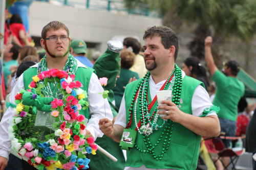 人們大多按照傳統習俗穿著黃色和綠色的衣服,臉上也用綠色油彩描畫出三葉苜蓿的圖樣。