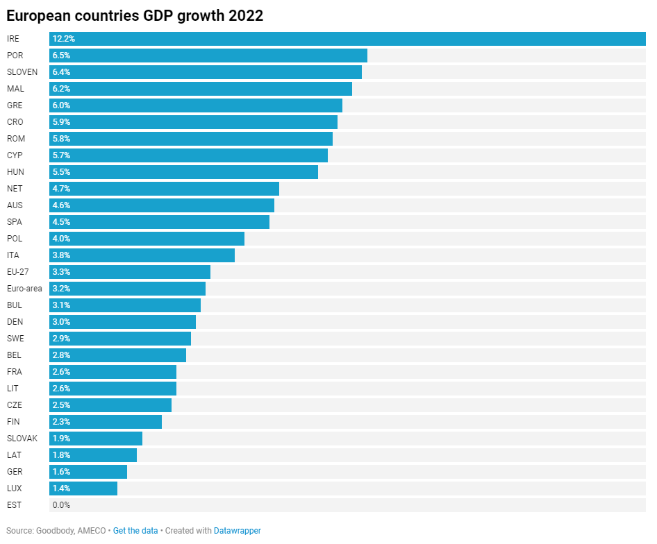 2022愛(ài)爾蘭經(jīng)濟(jì)增長(zhǎng)歐盟第一