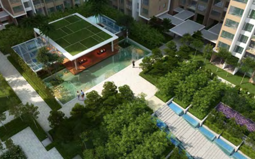 項目還配套有一個室外泳池,天際會所,室內迷你高爾夫球場,室外羽毛球場和兒童游樂區等。項目配置 3 層地面停車場,規劃有1908 個車位,每戶至少配備 2 個車位,而大戶型更最多配備 4 個車位。