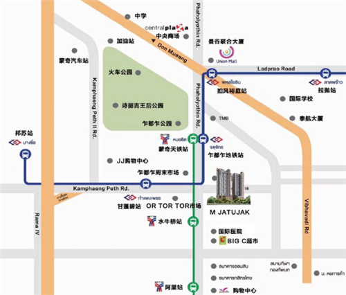 BTS天鐵1站地,8分鐘到達在建高鐵站Bang Sue,直線距離1.5km;