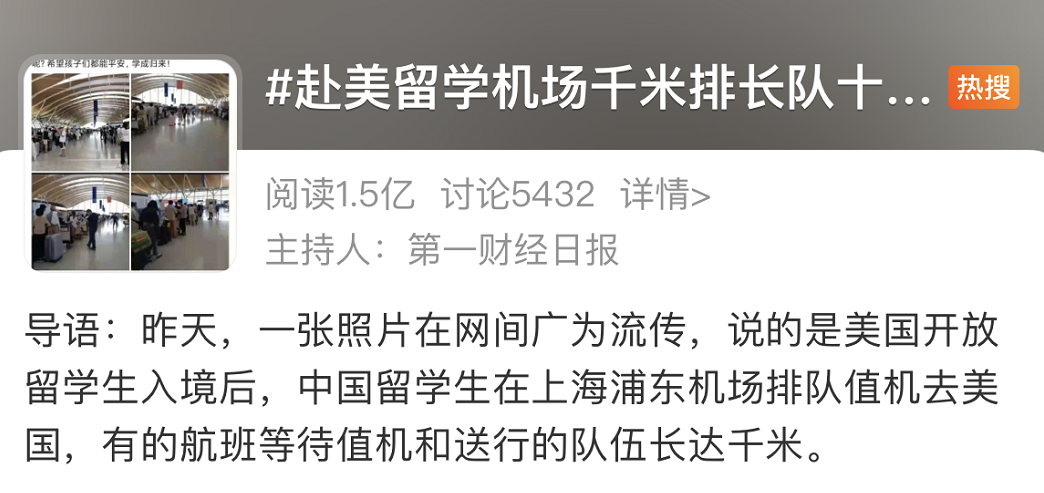 隨著開學季臨近,出國留學的返校旺季也來了,具體有多“旺”呢?“赴美留學機場排千米長隊”這個話題,直接沖上熱搜榜!而且赴美商務艙更是再現10萬的高票價!