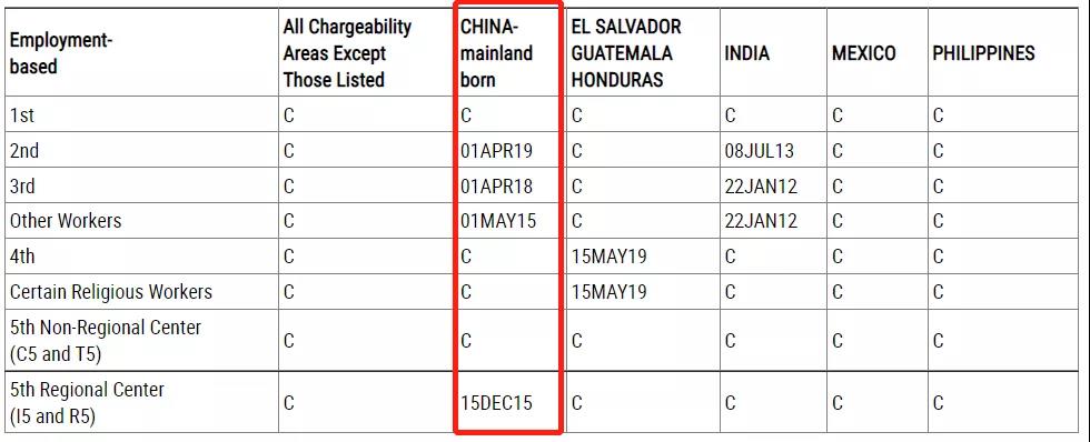 ·EB5(直投)排期取消,無排期;EB5(區域中心)暫不可用。