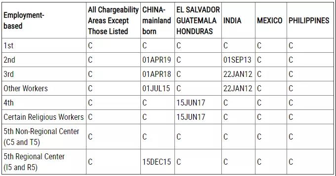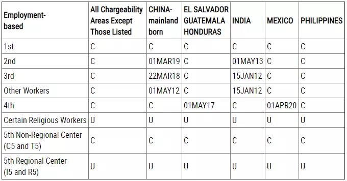 EB-5(直投)無排期;EB-5(區域中心)繼續停滯。