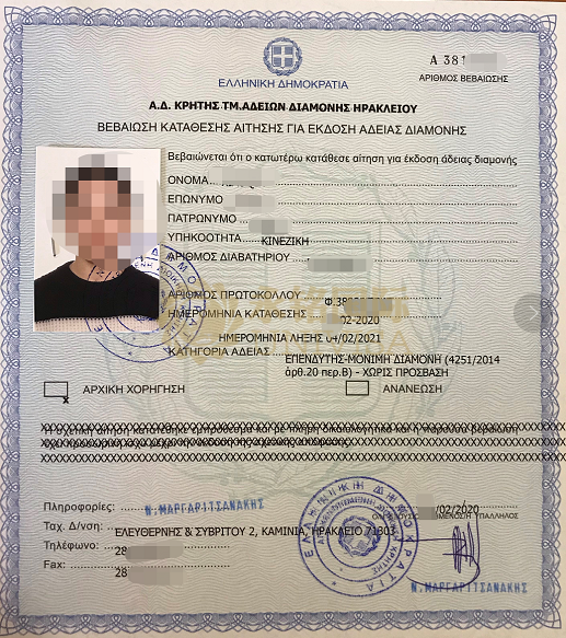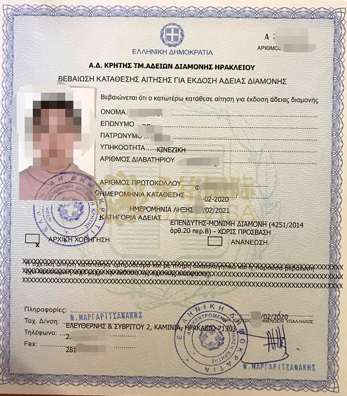 成都貴賓客戶Z先生一家獲批希臘藍紙